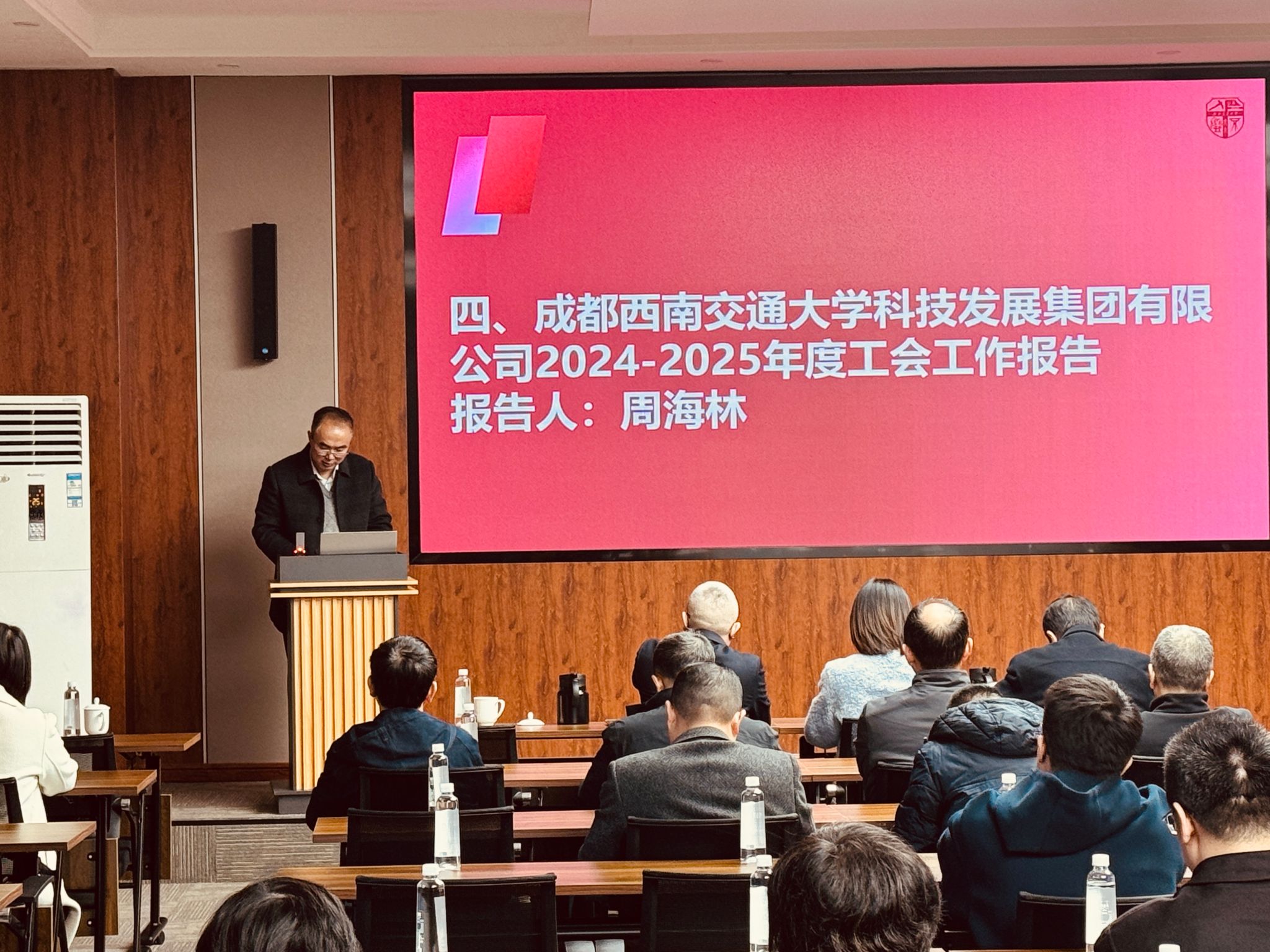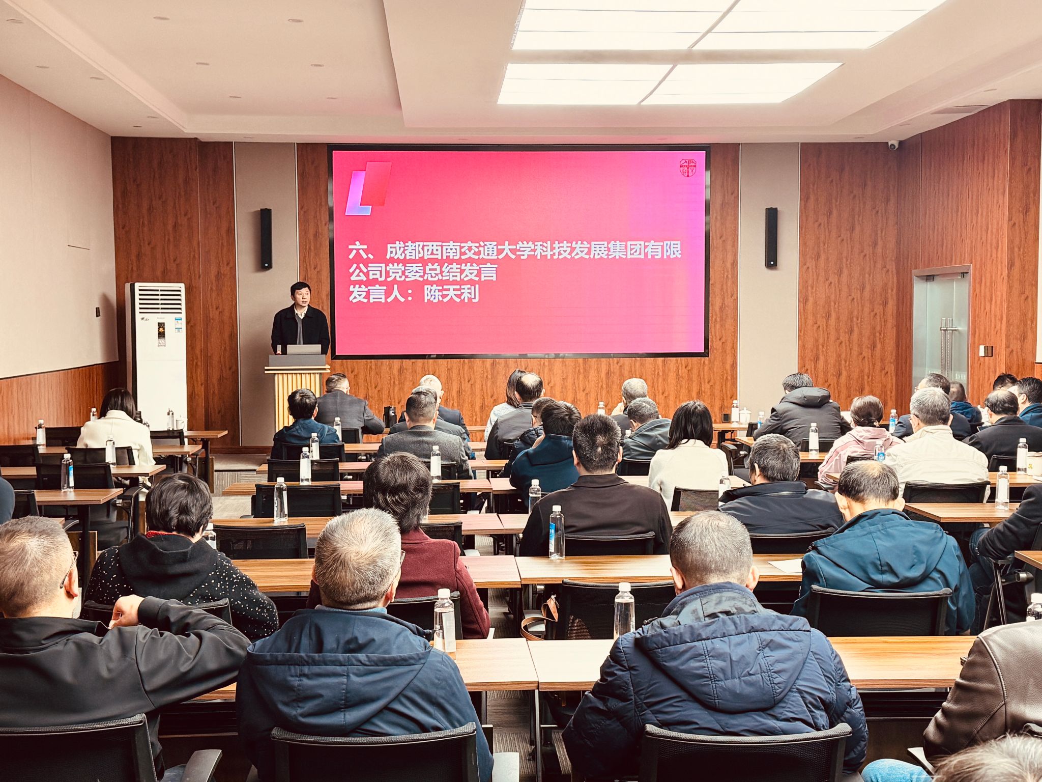 为凝聚发展共识、擘画前进蓝图,进一步推动集团高质量发展,12 月 4 日上午九点三十分,西南交通大学科技发展集团有限公司第一届教职工大会暨第一届二次工会会员大会在九里校区创新大厦一号报告厅隆重召开。西南交通大学工会副主席王轶,集团公司党委书记、董事长陈天利,集团公司总经理杨韬,以及来自集团各基层工会的会员代表齐聚一堂,共商集团发展大计、共话工会建设新篇。会议依次听取并审议了集团公司工作报告、工会工作报告及工会经费审计报告,为集团下一阶段发展明确了方向、凝聚了合力。