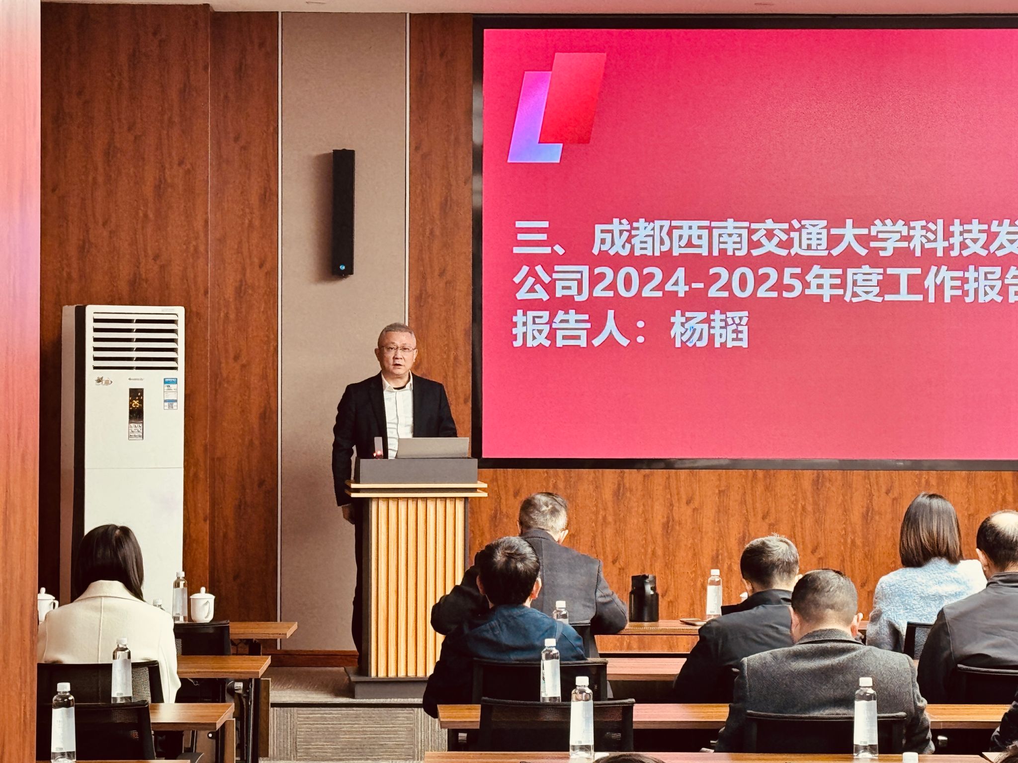 集团总经理杨韬作集团公司工作报告,从六大维度全面复盘 2024-2025 年工作。在集团党委的统筹引领下,团队聚焦科创园建设夯实科创载体、助力学校科技成果转化打通产学研链路、强化动态管理提升运营质效、完善法人治理结构规范企业运行、克服多重困难实现国有资产保值增值、稳妥整改历史遗留问题扫清发展障碍。同时,报告也深入剖析了新时代背景下集团面临的行业形势与发展挑战。