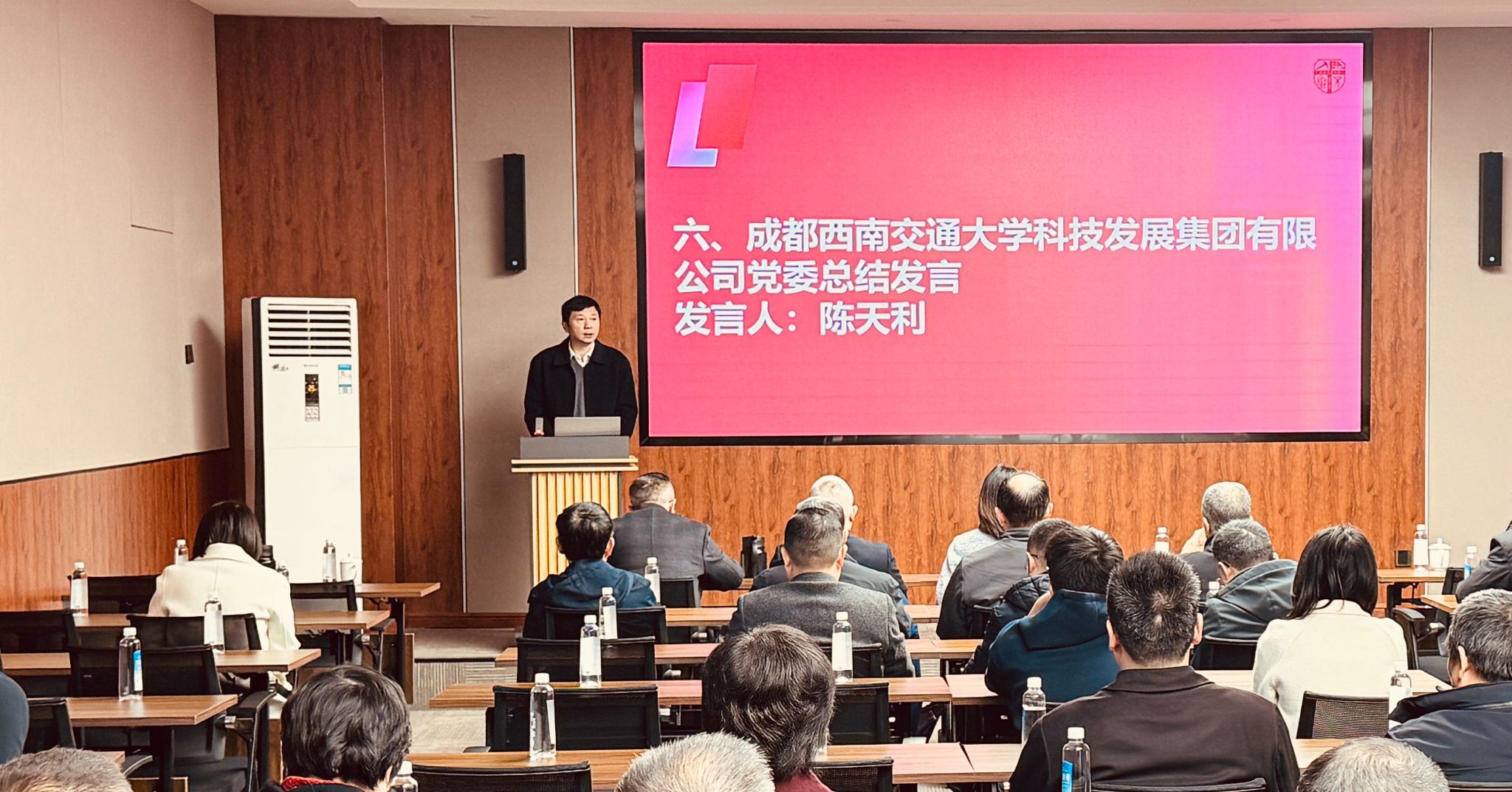 25-12-05 17:33:24 知行合一谱新篇 凝心聚力促发展—— 西南交通大学科技发展集团教职工大会暨第一届二次工会会员大会隆重召开为凝聚发展共识、擘画前进蓝图,进一步推动集团高质量发展,12 月 4 日上午九点三十分,西南交通大学科技发展集团有限公司第一届教职工大会暨第一届二次工会会员大会在九里校区创新大厦一号报告厅隆重召开。西南交通大学工会副主席王轶,集团公司党委书记、董事长陈天利,集团公司总经理杨韬,以及来自集团各基层工会的会员代表齐聚一堂,...